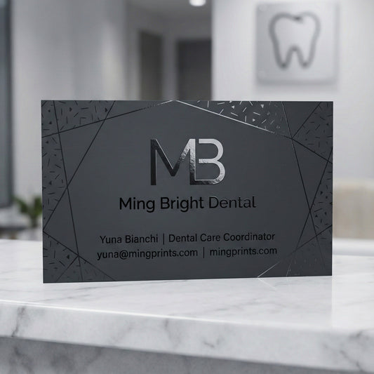 Apply Spot UV to key elements like logos or names to create striking visual and tactile contrast against a matte background.